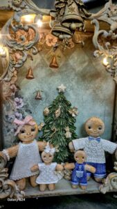 Κάθε Δεκέμβρη, όταν τα φώτα του ελάτου άναβαν και το εργαστήρι μοσχοβολούσε κανέλα, η μπισκοτοοικογένεια έβγαινε από το κουτί της για να φορέσει τα γιορτινά της.